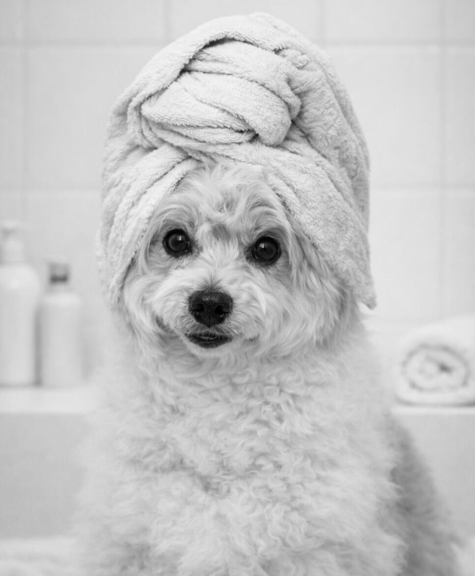 a luxurious shampoo & condition, a nourishing hair mask, and the use of premium, salon-grade, pet-safe products a blow-dry or fluff-dry, light de-shedding as needed, nail care, and gentle ear cleaning.
